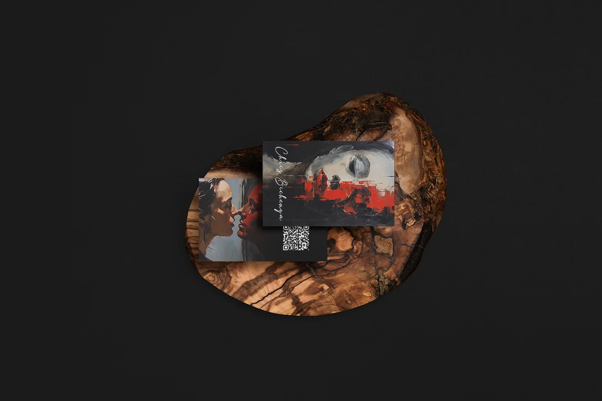 Lors d’expositions, de salons d’art ou de rencontres professionnelles, la carte de visite permet de laisser une trace tangible de votre travail. Pour Chris Bichenya, nous avons créé des cartes reprenant les teintes rosĂ©es et violacĂ©es caractĂ©ristiques de ses Ĺ“uvres, en cohĂ©rence parfaite avec son site internet. Le choix du papier, de la finition et de la typographie Ă©voque l’Ă©lĂ©gance de ses crĂ©ations picturales tout en mettant en valeur les informations essentielles : nom d’artiste, discipline et liens vers le portfolio en ligne.